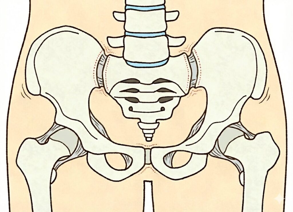 恥骨は、骨盤の前側にある「つなぎ目」の部分です。