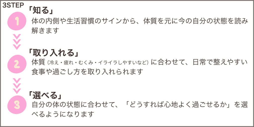 日々の過ごし方から体をサポートする、自分専用のケアの指針が見えてきます。